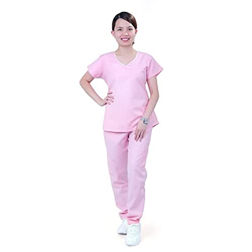 Fashion Short Sleeve design with V neck scrub top features pencil stitch, two patch pockets, side vents pattern, suitable for hot weather and summer wear.